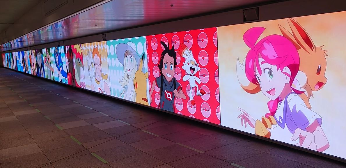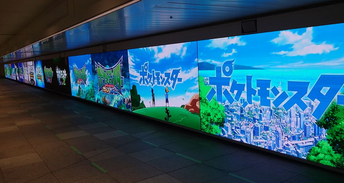 というのも、現在、新宿駅の東西通路ではアニポケ広告の映像が流れています。