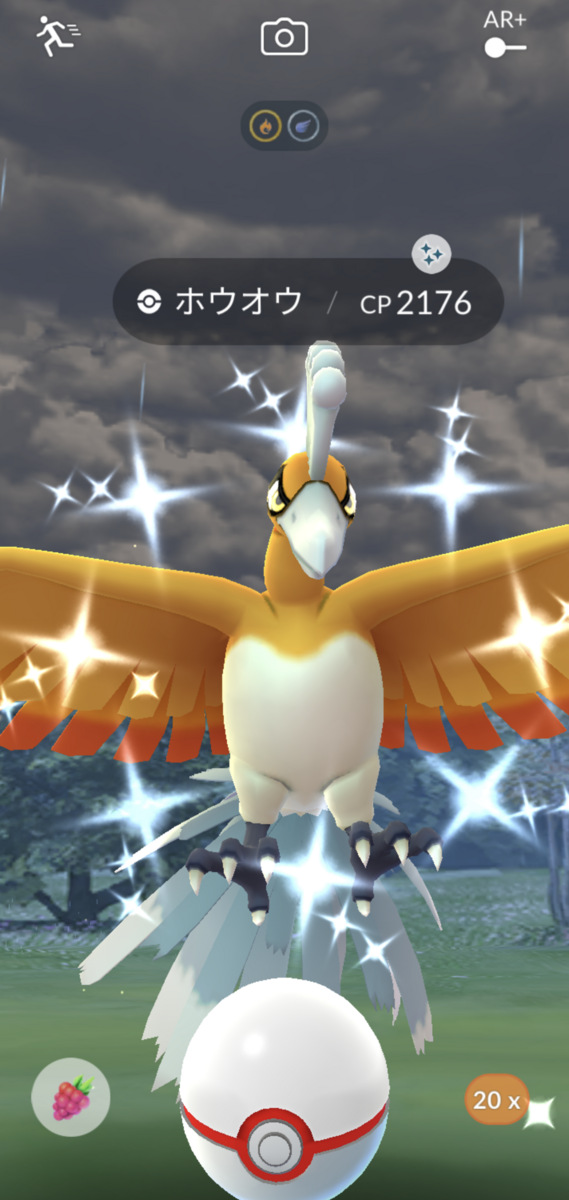 ヤドン出現が一旦終わった17時からホウオウのレイドもやっていたので挑戦したのですが、なんと色違いのホウオウが出てきてくれました!